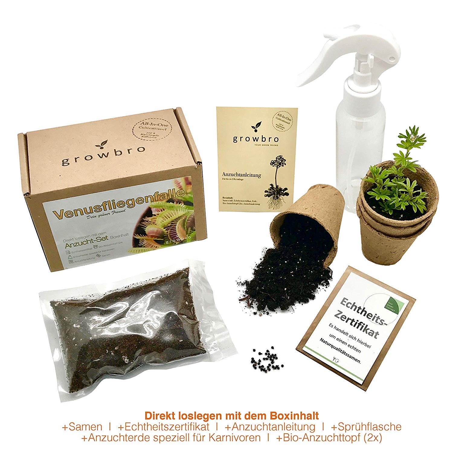 Geburtstagsgeschenk Zimmerpflanzen Venusfliegenfalle Growbro Anzuchtset Inkl Fleischfressende Pflanze Geschenk Fur Frauen Manner Spruhflasche Pflanzen Samen Vatertag Blumen Pflanzen Garten