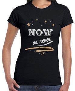 Designer Shirt Glitzer Now Or Never Strass Oberteil Damen Lady T Shirt Schwarz Ebay
