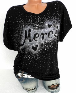 Longshirt Tunika Glitzer Merci Danke Shirt Schwarz Damenmode Oberteil 40 42 44 Ebay
