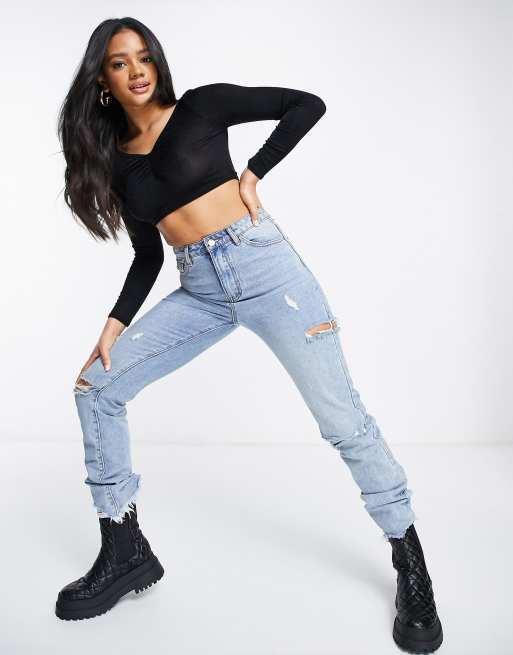 Fashionkilla Langarmliges Kurzes Glitzer Oberteil In Schwarz Asos