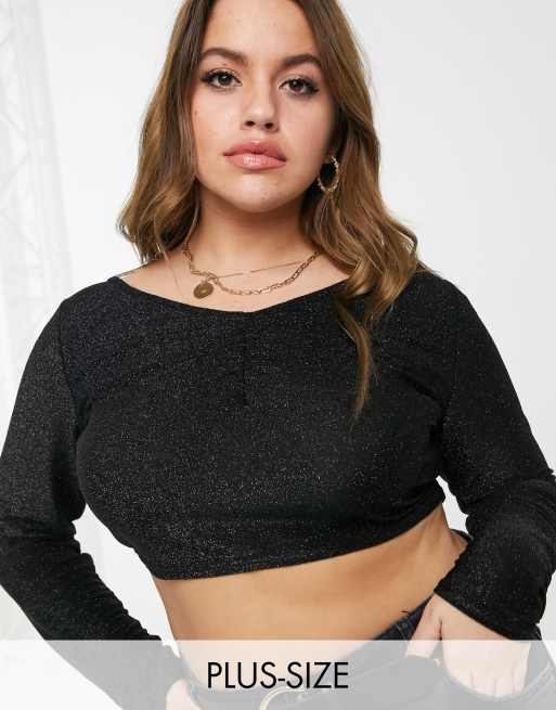 Fashionkilla Plus Schulterfreies Langarmliges Glitzer Oberteil Mit Kurzem Schnitt In Schwarz Kombiteil Evesham Nj