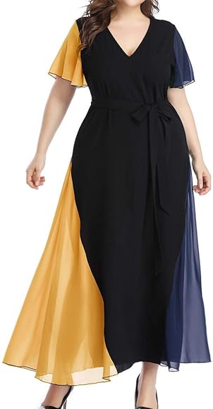 Shobdw Frauen Chiffon Kleider Damen Abendkleider Lang Grosse Grossen Lace Up Kurzarm Patchwork Kleid Abschlussball Kleider Damen Grosse Grossen Sexy Tiefes V Ausschnitt Slim Maxikleid Amazon De Bekleidung