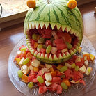 Hai Aus Wassermelone Mit Buntem Obstsalat Fur Kinder Lebensmittel Essen Hai Wassermelone Lustiges Fingerfood Fur Kinder