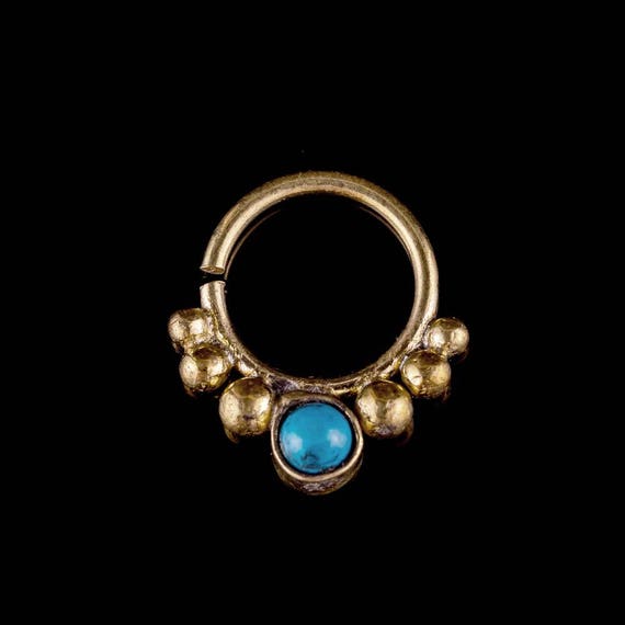 18g Septum Ring Gold Indianisches Messing Turkisfarbener Etsy