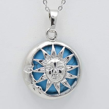Tfood Edelstein Anhanger Naturstein Naturlicher Runder Blauer Turkisfarbener Anhanger Mit Silbernen Halsketten Der Sun God Box Fur Damenschmuckgeschenke Amazon De Sport Freizeit
