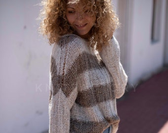 Pullover Stricken Muster Gestreift Fur Frauen Angora Ltd Etsy