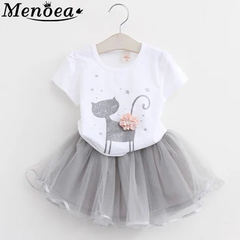 Madchen Kleid Madchen Kleidung Sommer Stil Katze Cartoon Niedliche Kleine Weisse Cartoon Kleid Katzchen Gedruckt Kinder Kleider Leather Bag