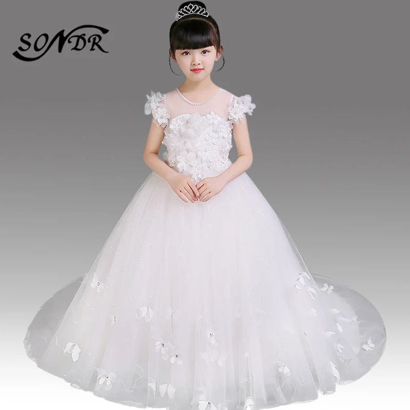 Neue Spitze Ballkleid Weisse Blume Madchen Kleider Pailletten Kinder Hochzeit Party Kleid Lange Erstkommunion Kleider Fur Madchen Prinzessin Dresses For Graduation Party Dress Up Girls Dressesdresses Dress Aliexpress