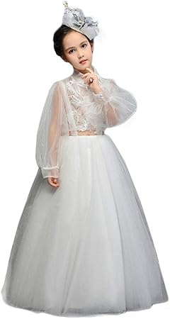 Elegant Weisse Kleider Kurz Vor Und Lange Abschnitte Kinder Prinzessinkleid Spitze Bestickt Mit Langen Armeln Im Westlichen Stil Hochzeitskleid Musik Vom Klavier Plus Samt Warmen Herbst Und Wintermodel Amazon De Kuche Haushalt