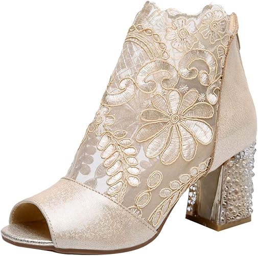 Jamron Damen Atmungsaktiv Spitzenbesatz Peeptoe Geschlossene Zehe Blockabsatz Kitten Heel Sommer Sandalen Booties Pumps Amazon De Schuhe Handtaschen