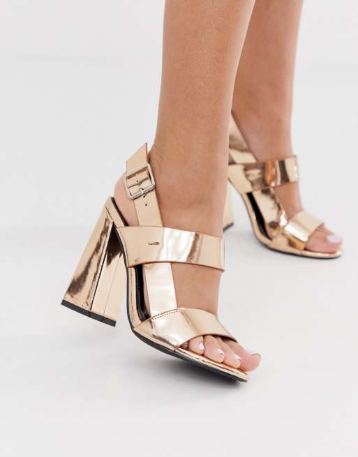 High Heel Sandalen Mit Blockabsatz In Rose Gold Missguided