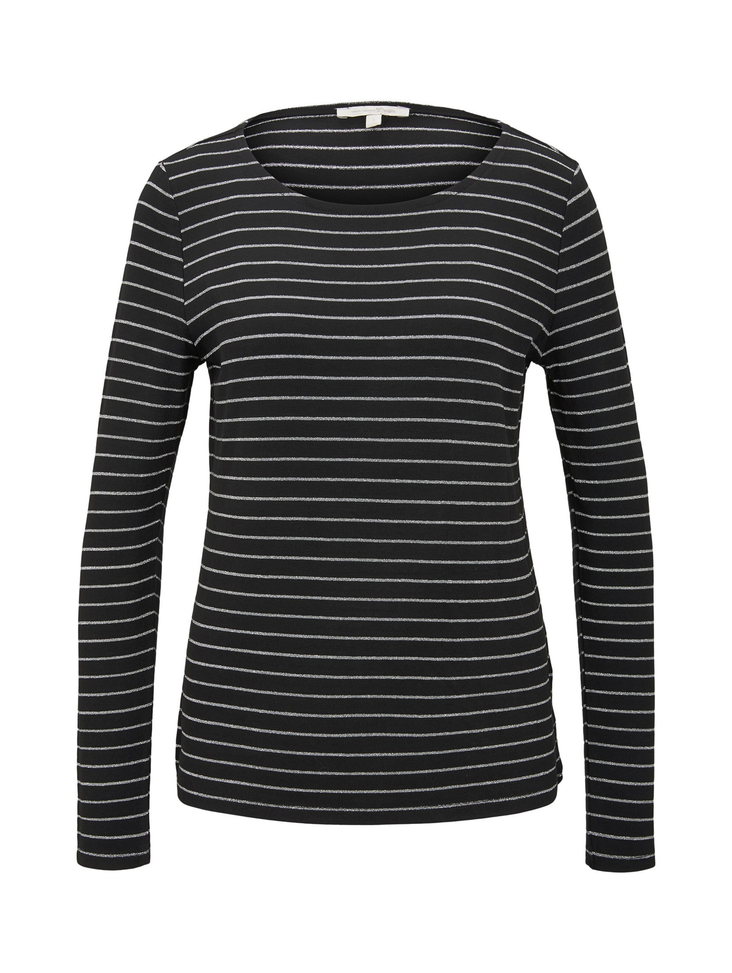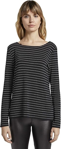 Tom Tailor Denim T Shirts Tops Gestreiftes Langarmshirt Mit Glitzerfaden Black Lurex Stripe S 2999 Amazon De Bekleidung