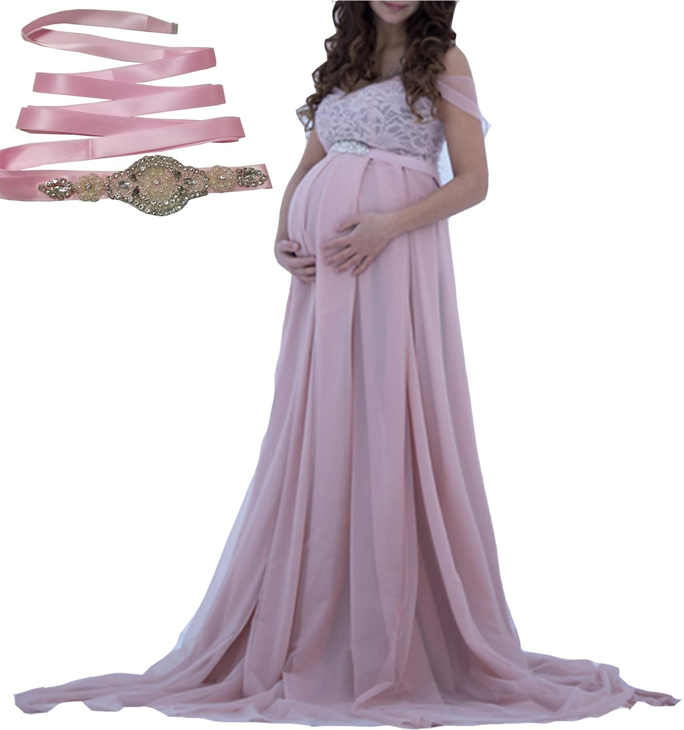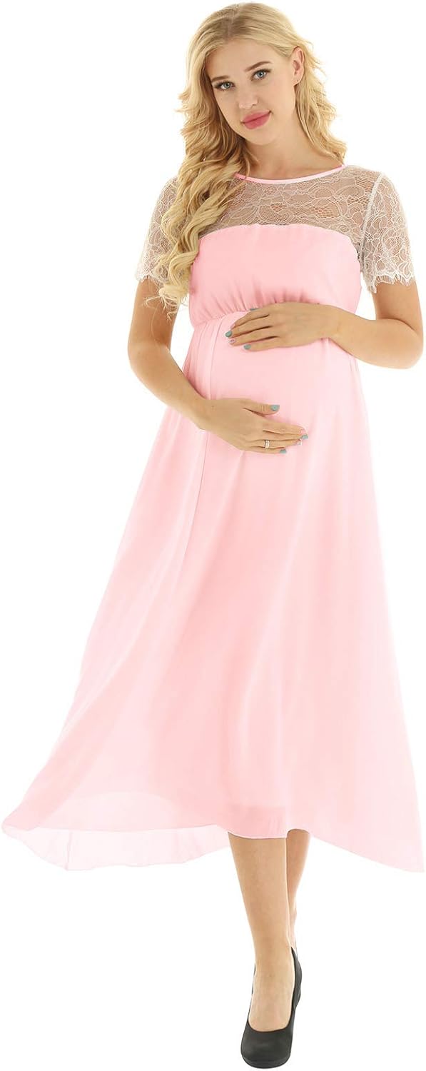 Damen Arbres Umstandskleid Festlich Maxi Spitzenkleid Chiffon Schwangere Fotoshooting Kleider Bekleidung Luxdental Si