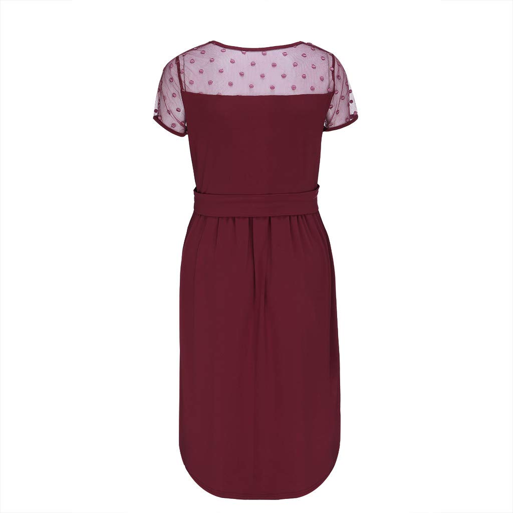 Ohq Umstandsmode Schwangere Frauen Umstandskleid Festlich Spitzenkleid Mit Polka Dot Spitzen Spaltung Kurzarm
