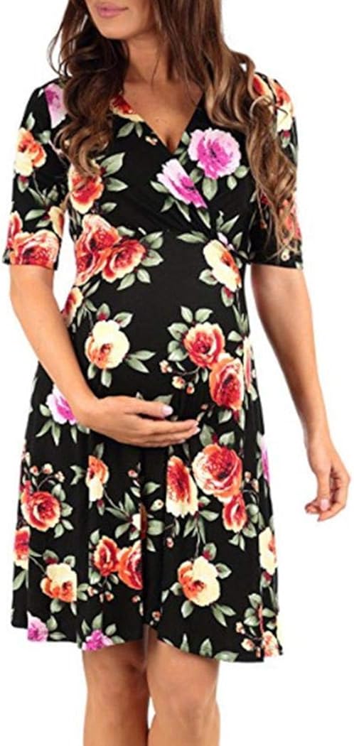 Biuday Damen V Ausschnitt Umstandskleid Festlich Still Blumenkleid Wickelkleid Sommer Umstands Stillkleid Umstandskleidung Kleider