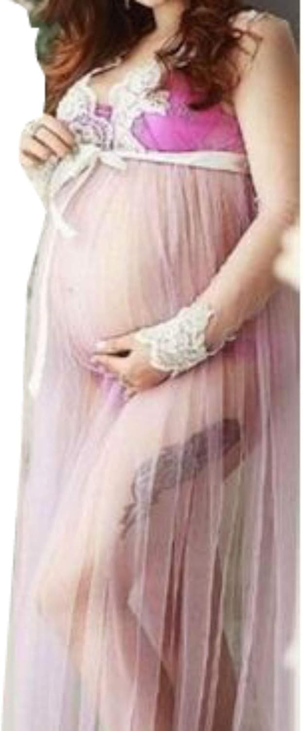 Umstandskleidung D Pink Umstandskleid Fotoshooting Mesh Spitze Festlich Lange Maxi Schwangerschaftskleider Maternity Gown Split Front Fotografie Stutzen Kleid Bekleidung Cerocero Mx