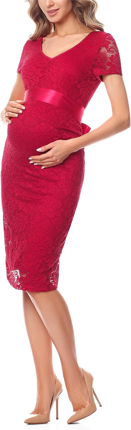 Iefiel Damen Umstandskleid Festlich Aus Spitze Knielang Halbarm Schwangerschaftskleid Elegant Mit Geknotetem Dekollete Fotografie Stutzen Party Amazon De Bekleidung