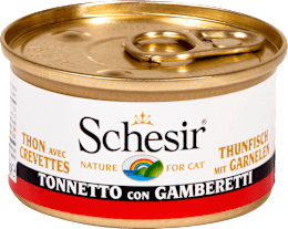 Schesir Cat Thunfisch mit Garnele ein exzellentes Nassfutter für Katzen, dessen Hauptbestandteil sind pazifischer Thunfisch, die mit Krabben und Reis ergänzt werden Die Hochwertigkeit und Natürlichkeit aller Rohstoffe sorgt für eine hohe Akzeptanz und eine gute Verdaulichkeit Das Ergebnis ist. Schesir Katzenfutter in Dose Thunfisch 85 g (Geschmack Thunfisch EAN ) aus dem Katzen Nassfutter Verwöhnen Sie Ihre Liebsten mit exklusiven Produkten Gratis Versand ab 3900 EUR Der Mindestbestellwert 1400 EUR. Das köstliche Katzenfutter Schesir Thunfisch mit Goldbrassenfilet in Fischbrühe eignet sich hervorragend als Erzängungsfutter für Ihre ausgewachsene Katze Die einwandfreie Qualität der Zutaten und das unwiderstehliche Aroma erfüllen auch die hohen Ansprüche richtiger Feinschmecker.