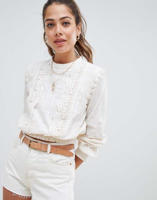 Other Stories Weisse Bluse Mit Spitze Und Stickerei Asos