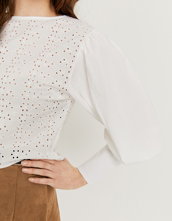 Bluse Mit Spitzen Details Und Stickerei Weiss Sack S Myclassico Com