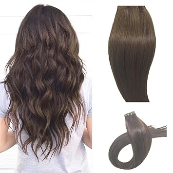 Echthaar Tape In Extensions Haarverdichtung Haarverlangerung Glatt Tressen X 4 Cm Breit 40 Cm Schokobraun Amazon De Beauty