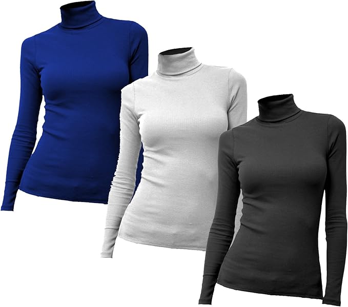 3x Damen Frauen Langarm Feinripp Rollkragen Rolli Rollkragenshirt Turtleneck T Shirt 3er Pack Basic Tshirt Tops 3 In 1 L Schwarz Weiss Royal Amazon De Bekleidung
