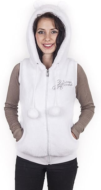 Damen Teddyfell Plusch Weste Jacke Mit Ohren Bommeln Amazon De Bekleidung