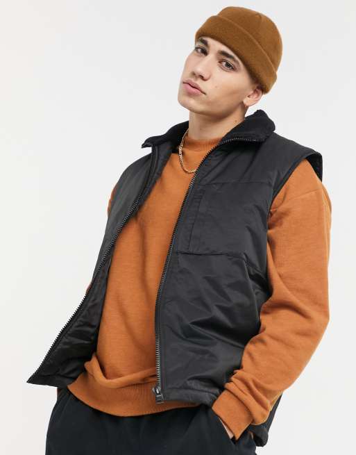 Evesham Nj Design Wattiertes Oversize Gilet In Schwarz Mit Teddyfell Kragen Evesham Nj