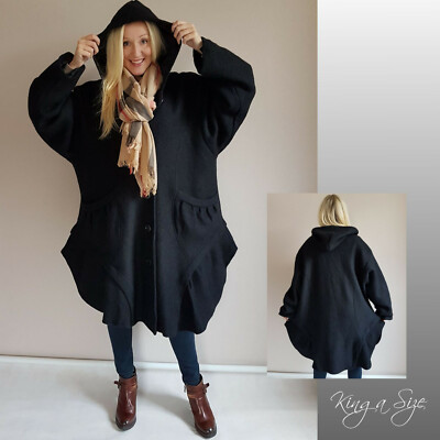 Triangle Wollmantel Mit Kapuze Mantel Schwarz Damen Gr 48