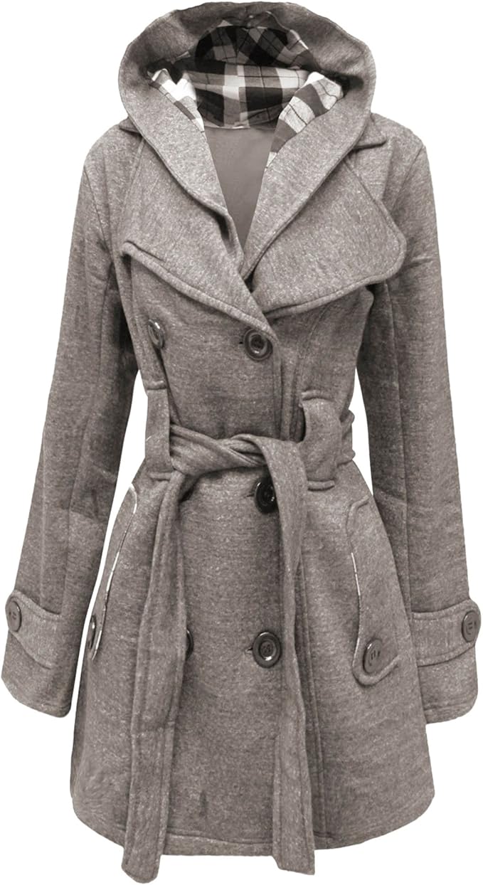 Damen Kapuzenmantel Mit Gurtel Und Knopf Grosse 36 48 Gr 36 Hellgrau Amazon De Bekleidung