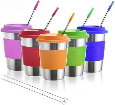 Dorey Hom Edelstahlbecher Fur Kinder Trinkglaser Aus Metall Mit Silikondeckel Trinkhalme Ideal Fur Aktivitaten Im Innen Und Aussenbereich Von Kindern Und Erwachsenen 5er Pack 12 Oz Amazon De Kuche Haushalt