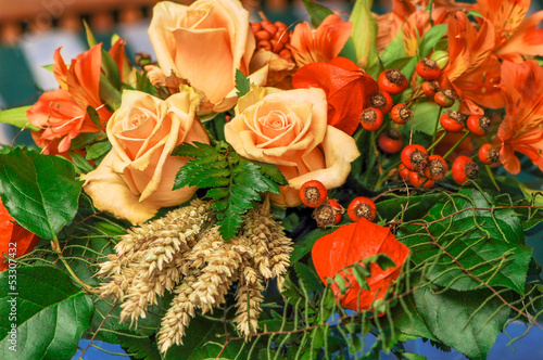 Herbstlicher Blumenstrauss Mit Rosen Hagebutten Und Getreide Kaufen Sie Dieses Foto Und Finden Sie Ahnliche Bilder Auf Adobe Stock Adobe Stock