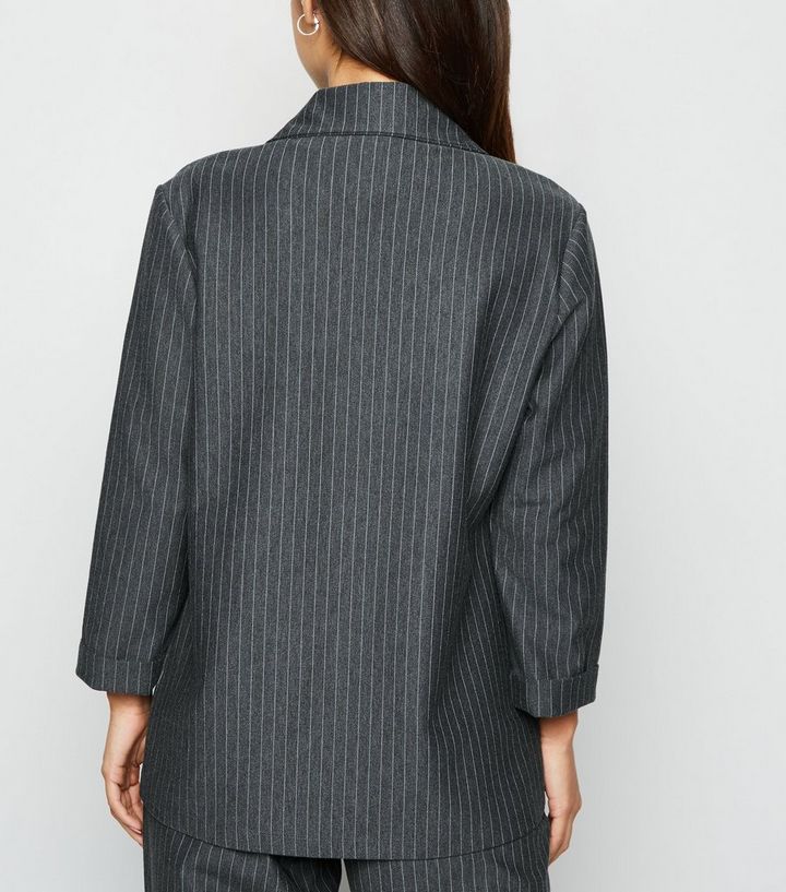Petite Grauer Langer Jersey Blazer Mit Nadelstreifen New Look