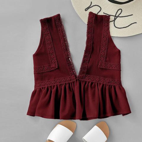Top Mit Tiefem V Ausschnitt Spitze Und Volant Um Den Saum From Shein On 21 Buttons