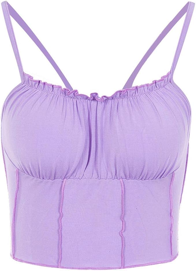Longra Damen Tops Mit Schmaler Volant Am Saum Frauen Tank Top Armellos Schulterfrei T Shirt U Ausschnitt Sommer Tops Gestrickte Tanktops Crop Tops Kurz Oberteile Shirts Amazon De Bekleidung