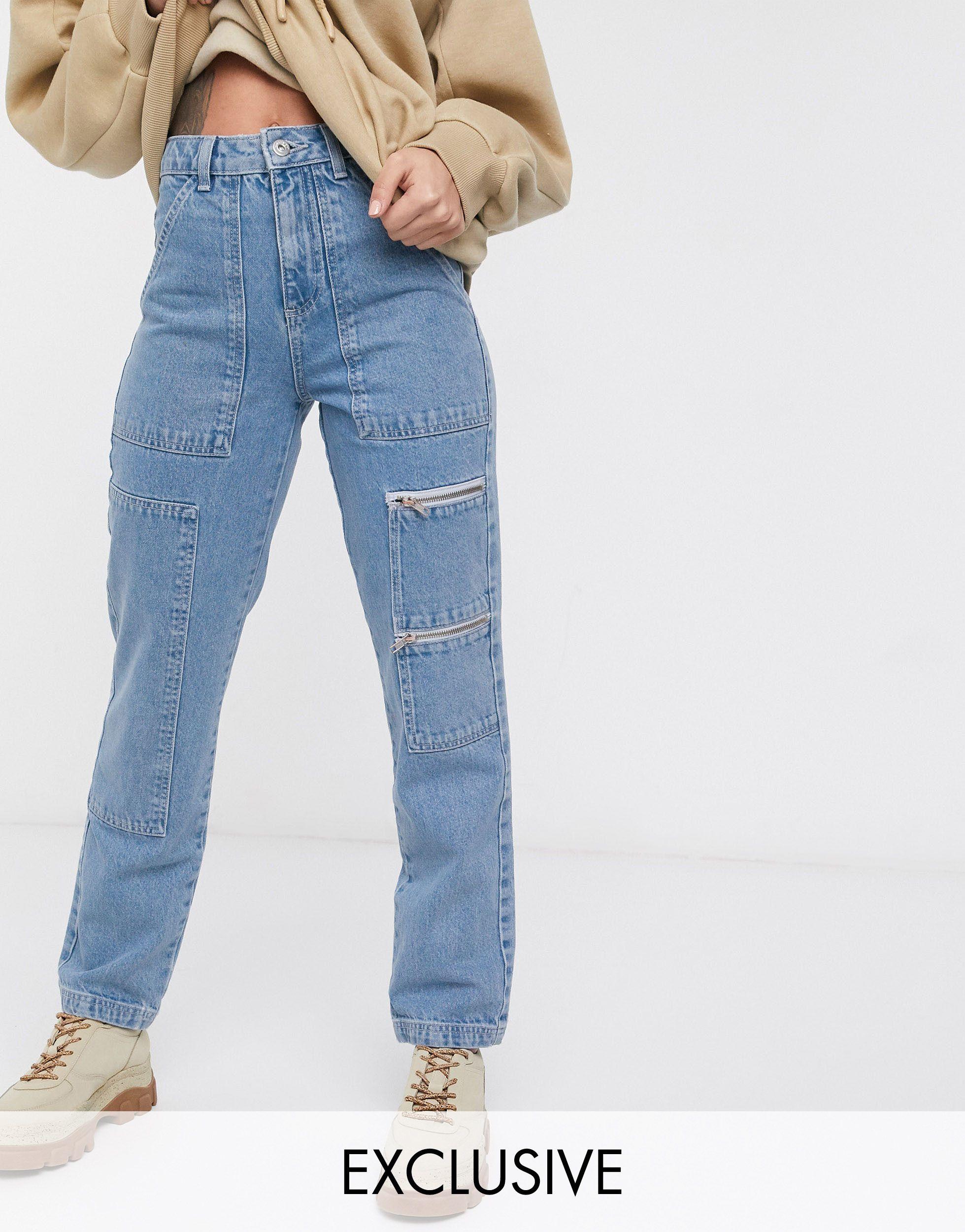 Collusion Denim Gerade Geschnittene Utility Jeans Mit Reissverschluss In Blau Lyst