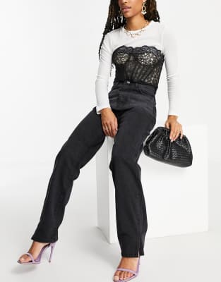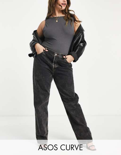 Evesham Nj Design Curve Gerade Geschnittene Jeans Im Stil Der 90er Jahre Mit Mittelhohem Bund In Verwaschenem Schwarz Evesham Nj
