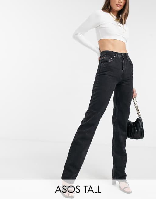 Evesham Nj Design Tall Gerade Geschnittene Jeans Aus Bio Baumwolle Mit Mittelhohem Bund Im Stil Der 90er Jahre Im Verwaschenem Schwarz Evesham Nj