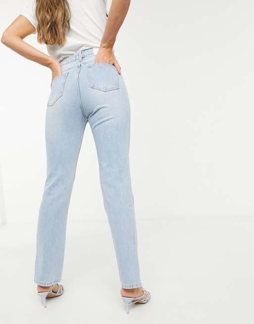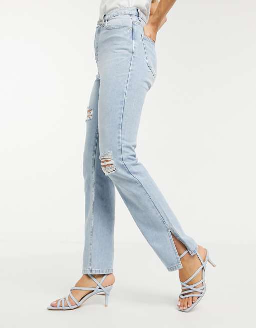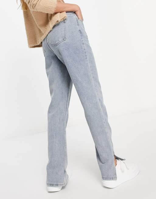 Missguided Gerade Geschnittene Jeans Mit Seitenschlitz In Verwaschenem Hellblau Asos
