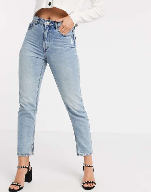 Mom High Ankle Jeans Light Denim Blue Ladies H M Us Best Mom Jeans Jeans Outfit Casual Mom Jeans