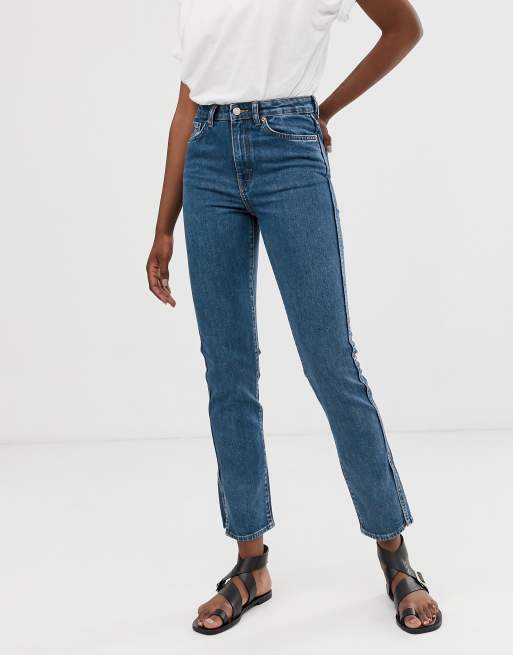 Weekday Blaue Gerade Geschnittene Stretch Jeans Aus Bio Baumwolle Mit Seitlichen Schlitzen Asos