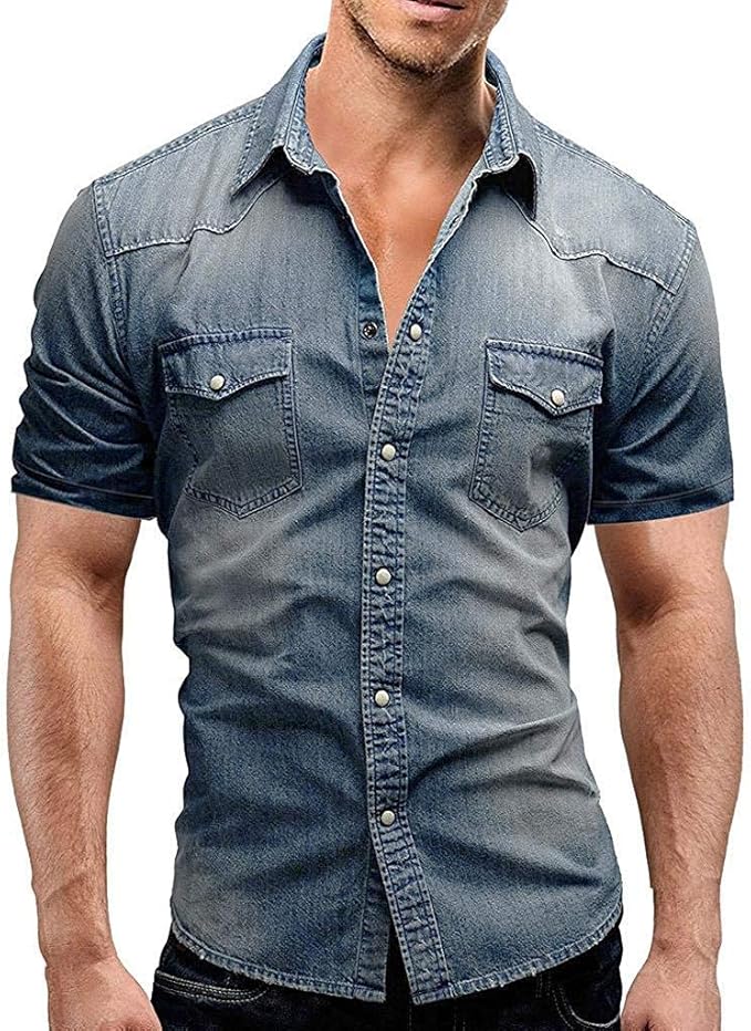 Bolawoo Kurzarm Hemd Herren Jeans Hemden Fit Slim Casual Button Mode Marken Shirt Mit Bluse Mit Kurzen Armeln Mit Tasche Amazon De Bekleidung