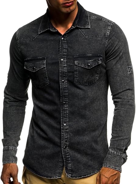 Leif Nelson Herren Jeans Hemd Slim Fit Bÿgelleicht Trend Langarm Freizeit Denim Grosse S Schwarz Amazon De Bekleidung