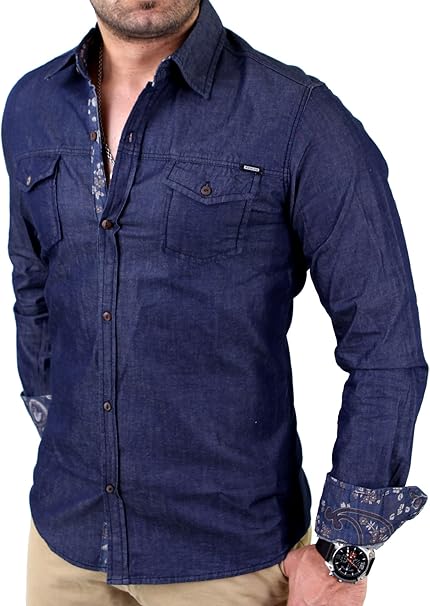 Herren Hemd Jeans Look Strick Armel Stoff Mix Langarm Shirt Meliert Farben Blau Grosse Hemd M Amazon De Bekleidung