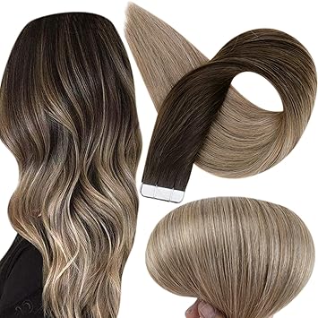 Amazon Com Fshine Tape In Hair Extensions 14 Inch Real Hair Extensions Balayage Color 2 Fading To 6 Chestnut Brown And 18 Ash Blonde Skin Weft Tape In Hair Extensions 50 Grams Pcs Full Head Beauty