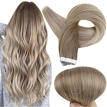 Amazon Com Fshine Blonde Tape In Hair Extensions Human Hair 22 Inch Balayage Color 8 Ash Brown Fading To 60 And 18 Ash Blonde Tape In Real Hair Extensions 50 Gram