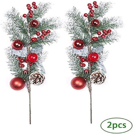 Amazon De Inconpro 2x Kunstliche Tannenzweige Weihnachten Deko Stechpalme Beeren Kunstlich