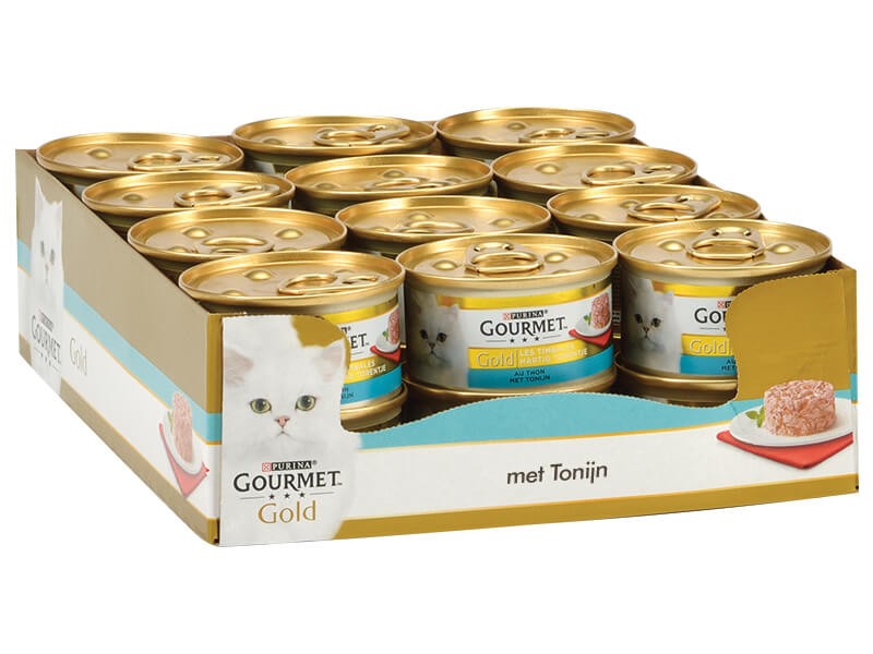 GOURMET Gold Feine Pastete Katzennassfutter mit Thunfisch im OnlineSupermarkt schnelle Lieferung kostenlose Rücksendung » Jetzt beim REWE Paketservice bestellen!. Gourmet Gold Katzenfutter Feine Pastete mit Thunfisch, 12er Pack (12 x 85 g) Dosen Gourmet Gold Katzenfutter Raffiniertes Ragout Rind, 12er Pack 12 x 85 g Dosen Hochwertige Zutaten. GourmetKatzenfutter – für ein abwechslungsreiches Geschmackserlebnis Wer Katzen besonders verwöhnen möchte, greift zu GourmetKatzenfutter, das für besondere Wohlfühlmomente steht Mit den hochwertigen Zutaten, der abwechslungsreichen Sortenvielfalt und dem leckeren Geschmack sorgt die besondere Marke von Purina für eine hohe Akzeptanz.