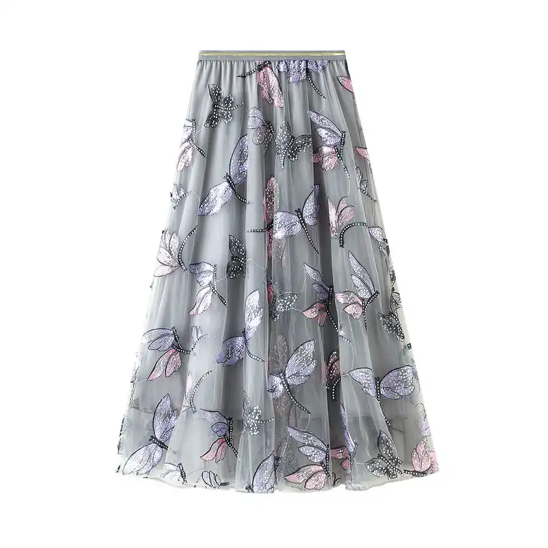 Pailletten Libelle Stickerei Rock Wf0133 Apricot Grau Frauen Damen Lange Tull Rock Plus Grosse Mesh Rocke Rocke Aliexpress