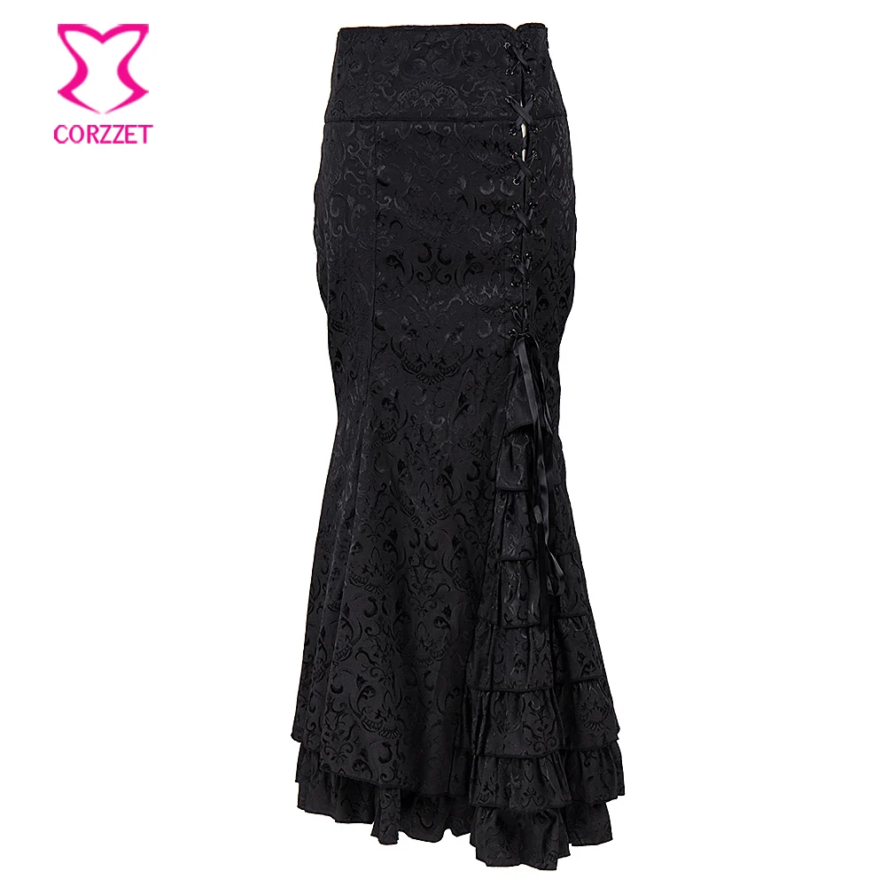 Schwarz Blumenbrokat Vintage Rock Plus Grosse Hohe Taille Steampunk Rock Lang Mermaid Lace Up Rusche Maxi Gothic Rocke Fur Frauen Rocke Aliexpress